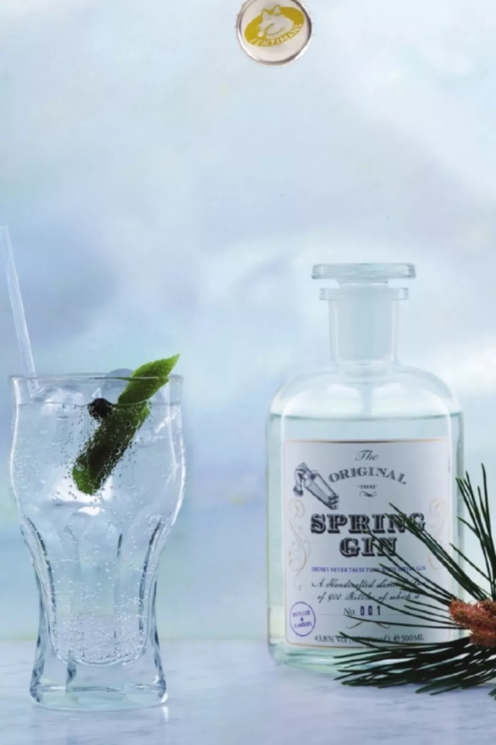 De Spring Gin dankt zijn unieke karakter aan twee niet eerder gebruikte botanicals: rabarberwortel, voor een vleugje bitterheid, en de dennenknopjes die Manuel herinneren aan de geur van de dennenbossen in de Kempen, waar hij opgroeide. In totaal zijn er dertien botanicals in het spel. De gin wordt vier keer gedistilleerd en artisanaal vervaardigd in de stijl van een London Dry Gin.