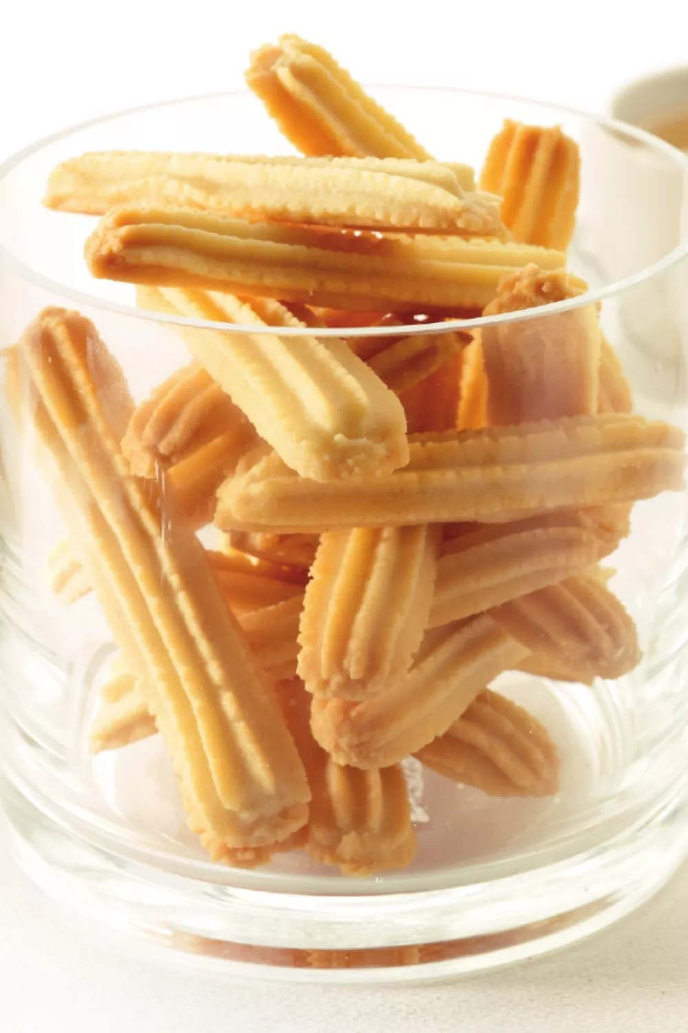 Verwarm de oven voor op 150°C. Draai de boter luchtig in de keukenmachine. Voeg basterdsuiker, melk, zout en patentbloem toe en laat de keukenmachine nog even draaien. Schep het deeg in een spuitzak. Leg een stukje bakpapier op de bakplaat en spuit hierop de koekjes.