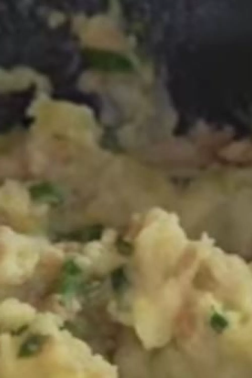 Pureer ondertussen de aardappelen samen met wat boter en een scheutje melk. Breng op smaak met peper, zout en nootmuskaat.
