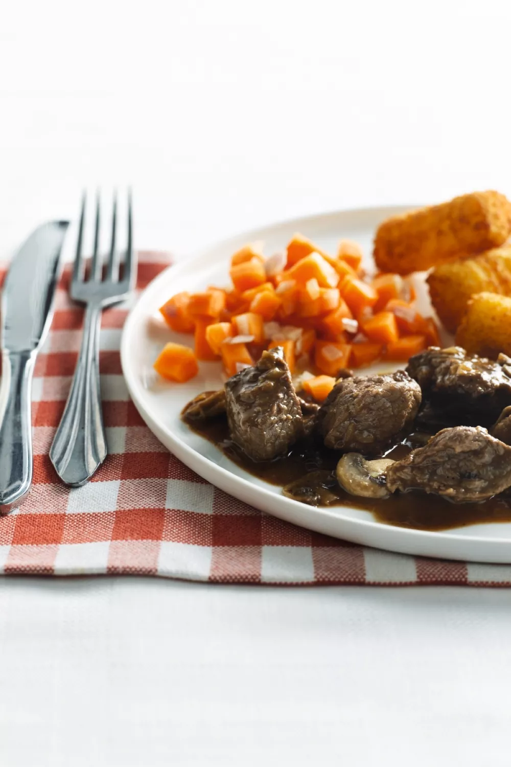 Dit rijkgevulde stoofvlees combineert mals rundvlees met donkere Leffe en een verrassende chocoladesaus voor een diepe, hartige smaak. Langzaam gestoofd met mosterdbesmeurd brood, fond en laurier en aangevuld met champignons en zachte peekes is dit comfort food ideaal voor herfstige diners of een gezellig weekendmaal. Serveer met kroketjes of aardappelpuree voor een klassieke Vlaamse maaltijd vol geur en geborgenheid.