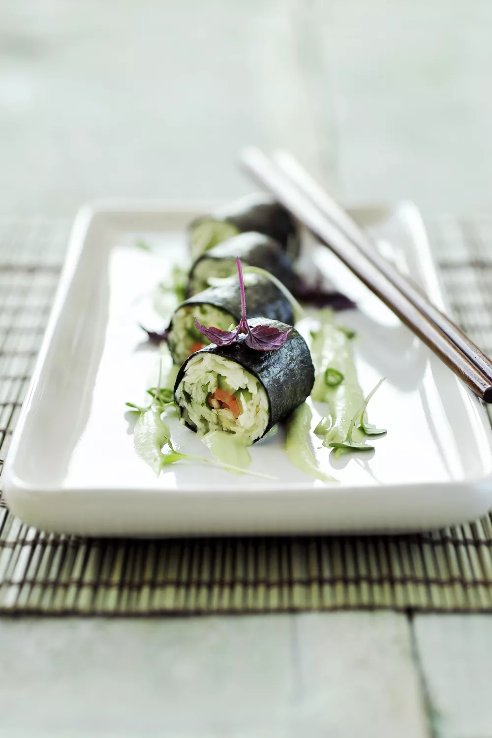 Het handigst om sushirolletjes te maken is een bamboematje te gebruiken. Die zijn in zowat elke Aziatische speciaalzaak en sommige supermarkten te vinden.