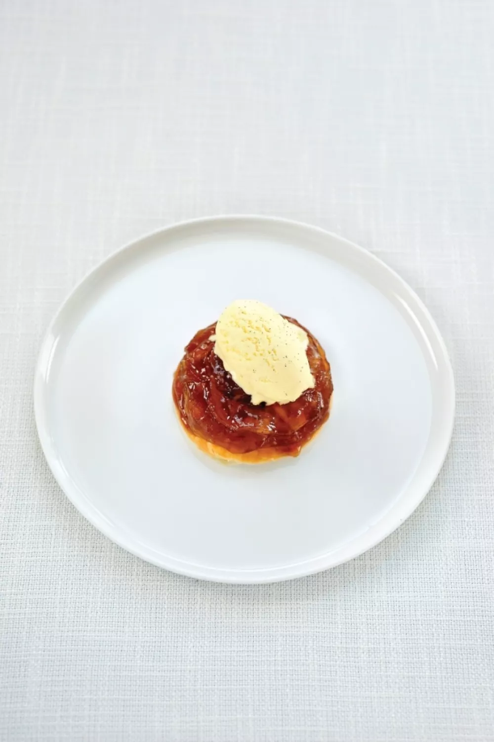 Smeer de tarte tatins in met een laagje sinaasappelgelei en werk af met een bolletje vanille-ijs.