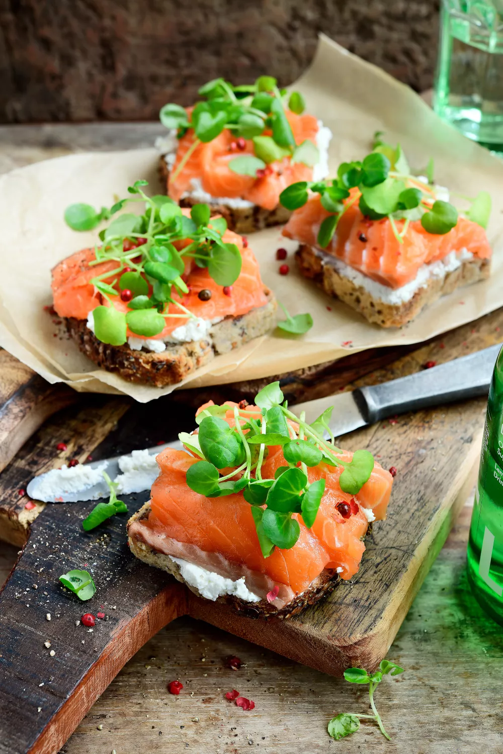 Zalmfilet gemarineerd in fruitbier met kriekachtige toetsen geeft deze toast een verrassend zoetzure en kruidige smaak. De combinatie van luchtige ricotta met mierikswortelpasta, frisse citroenzeste en roze peper maakt het ideaal voor een zomerse borrel of lichte brunch. Simpel te bereiden: nachtje marineren, brood toasten en afwerken met waterkers en olijfolie.