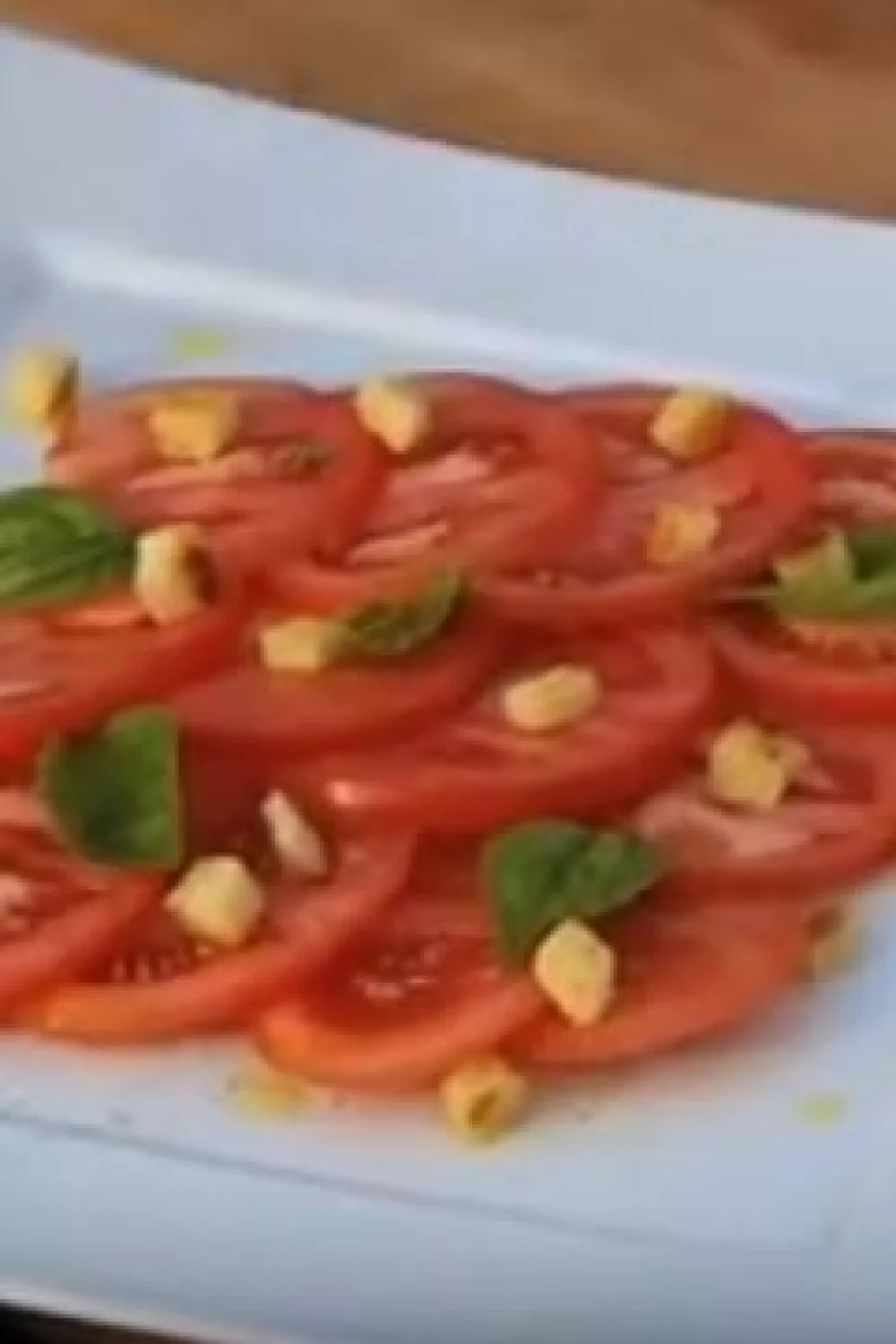 Een frisse tomatensalade met zachte toptomaten, knapperige broodcroutons en geurige verse basilicum. Dunne plakjes tomaat worden enkel voorzien van een scheutje olijfolie, versgemalen zwarte peper en zeezout voor pure zomerse smaken. Snel en elegant als voorgerecht, lichte lunch of bijgerecht bij een barbecue.