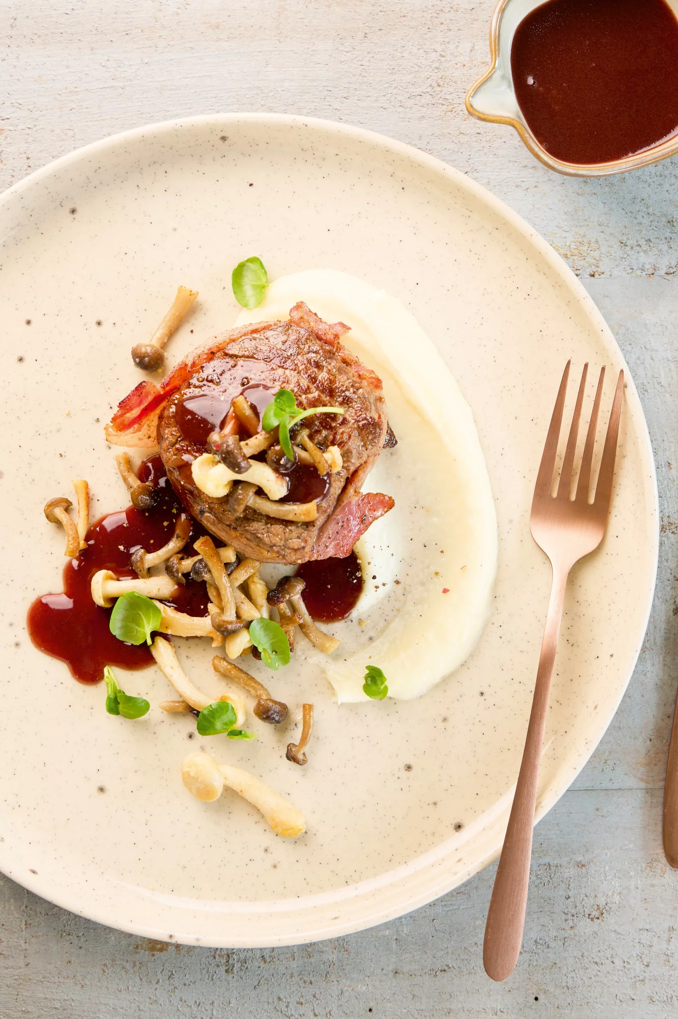 Tournedos met rodewijnsaus en pastinaakpuree