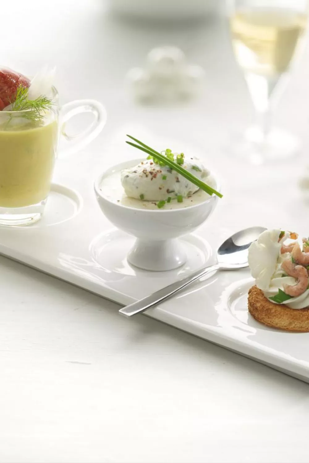 Een trio van feestelijke hapjes dat zilt en romig combineert: luchtige kreeftenmousse op toast met gepelde grijze garnalen en frisse bloemkool, een koude kreeftenconsommé als gelée en een warme venkelsoep met rivierkreeftjes. De bereiding speelt met inkoken, geleren en zacht stoven en gebruikt mascarpone, room en een scheutje cognac voor extra diepte. Perfect als luxe aperitief bij een feestelijke borrel of diner.