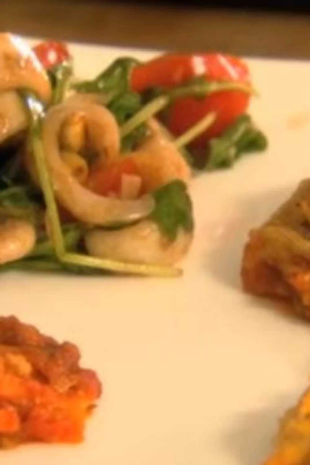 Trio van ovengebakken lasagnes geserveerd met een fris inktvisslaatje brengt mediterrane smaken samen: traditioneel, bonenrijk en pompoen met kip gecombineerd met kort aangebakken inktvis, rucola en zoete kerstomaatjes. Eenvoudig en feestelijk tegelijk, ideaal voor een zomerse lunch of een doordeweeks diner. Werk af met geroosterde pijnboompitten, limoenrasp en Parmigiano voor extra crunch en frisheid.
