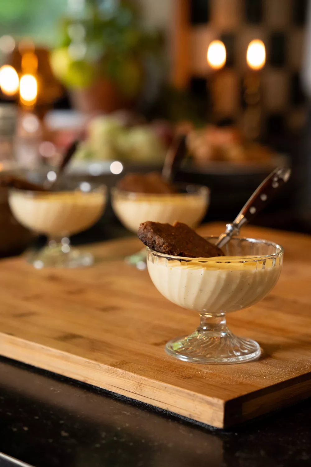 Duw in elk potje pudding een speculaaskoekje alvorens te serveren.