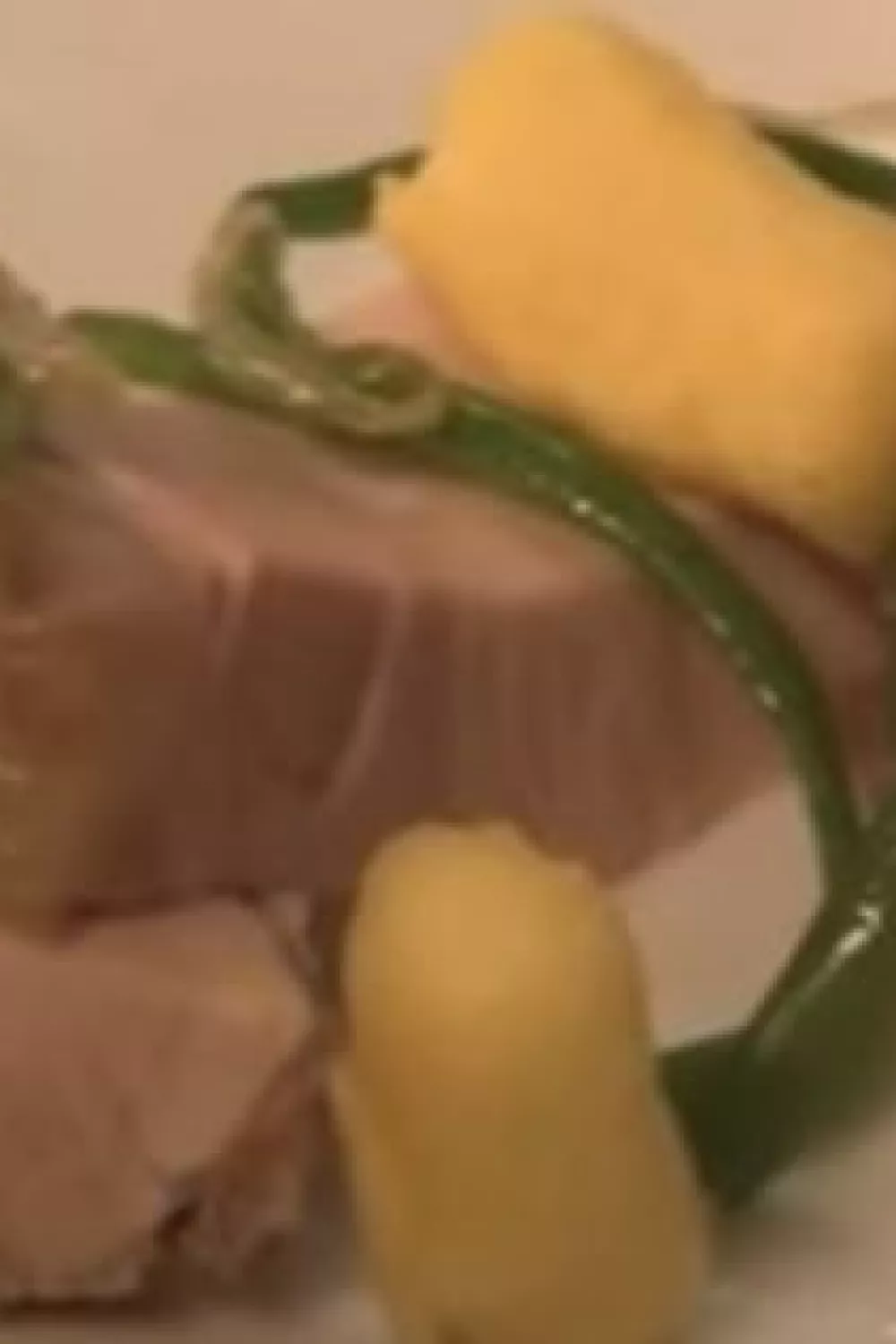Een feestelijk vleesgerecht met een goudbruin varkenskroontje en romige picklessaus, geïnspireerd door Hof van Cleve. De bereiding combineert klassiek braden en sausreductie met krokante pommes dauphines van aardappelpuree en soezenbeslag, aangevuld met verse boontjes en gesnipperde sjalot. Ideaal voor een zondagse lunch of winterse maaltijd waarbij techniek en pure smaken samenkomen.