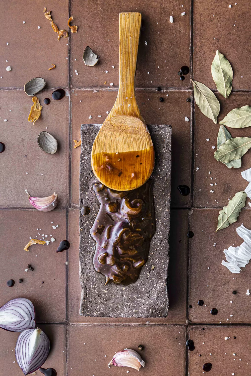 Deze rijke vegan bruine saus combineert umami van sojasaus met zacht gebakken rode ui, knoflook en een scheut rode wijn voor een diepe, hartige smaak. Met laurier en nootmuskaat als aromatische accenten en maïszetmeel om te verdikken laat je de saus rustig sudderen tot de perfecte consistentie. Heerlijk bij stoofschotels, geroosterde groenten of winterse stamppotten, zowel voor doordeweekse diners als feestelijke plantaardige maaltijden.