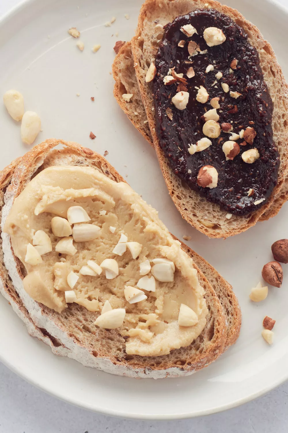Romige vegan chocopasta met witte amandelpasta, hazelnootpasta, cacaopoeder en een scheutje ahornsiroop voor een zachte lichte zoetheid. Dit smeersel maak je zonder bakken in enkele minuten door alle ingrediënten met een vork te mengen, perfect op zuurdesembrood als ontbijt of brunch en ideaal als snelle snack. Heerlijk voor plantaardige maaltijden, lunchboxen en knusse winterse ochtenden.