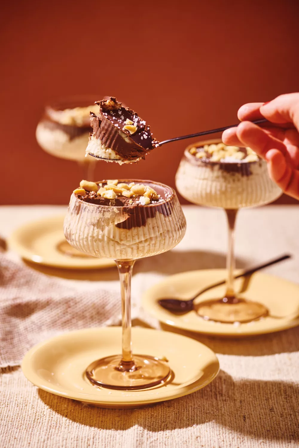 Deze romige vegan pindamousse brengt huisgemaakte pindakaas en smeltende pure chocolade samen tot een onweerstaanbare zoet en zoute traktatie. De luchtige structuur ontstaat door opgeklopte plantaardige room en zachte plantaardige roomkaas, waarna een warme chocoladeganache het geheel afmaakt. Eenvoudig en grotendeels zonder bakken, perfect als feestelijk dessert of voor een gezellige herfstavond.