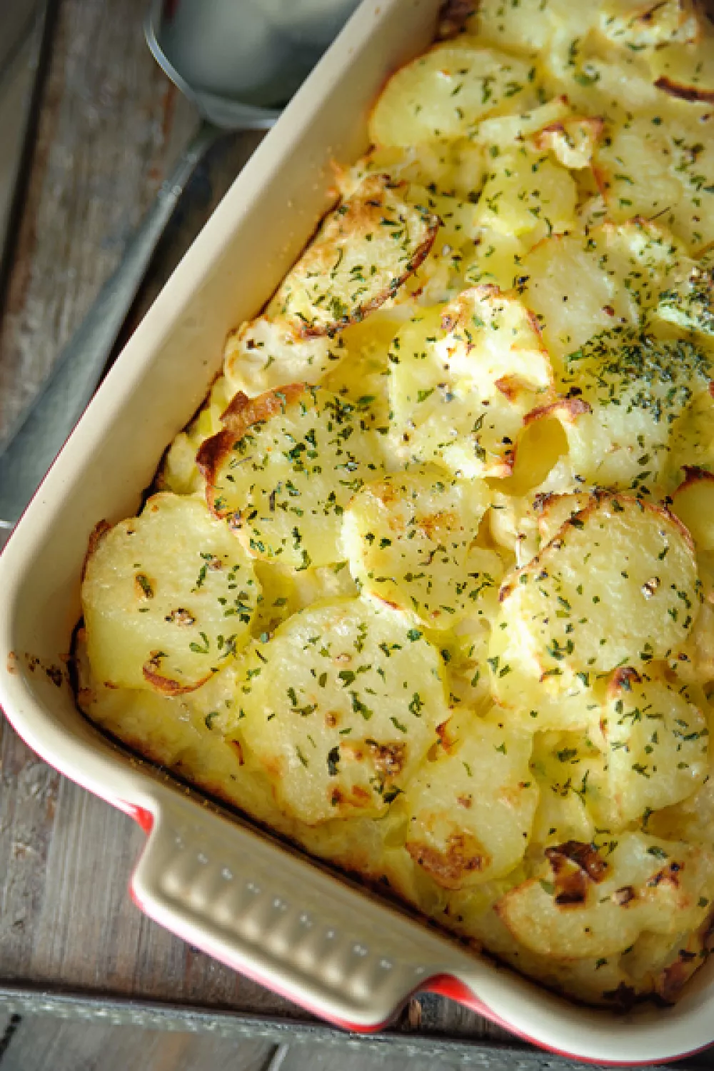 Bak 45 minuten in de oven tot de aardappelen goudbruin zijn.