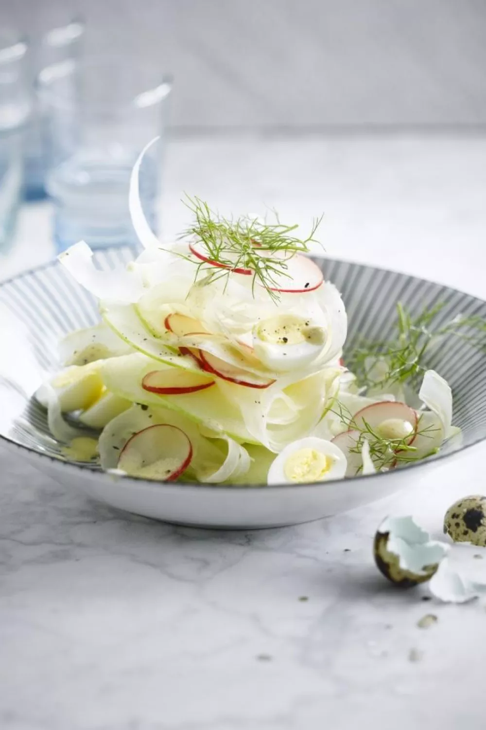 Stappenplan om recept “Venkel-appel-salade met kwarteleitjes” te bereiden