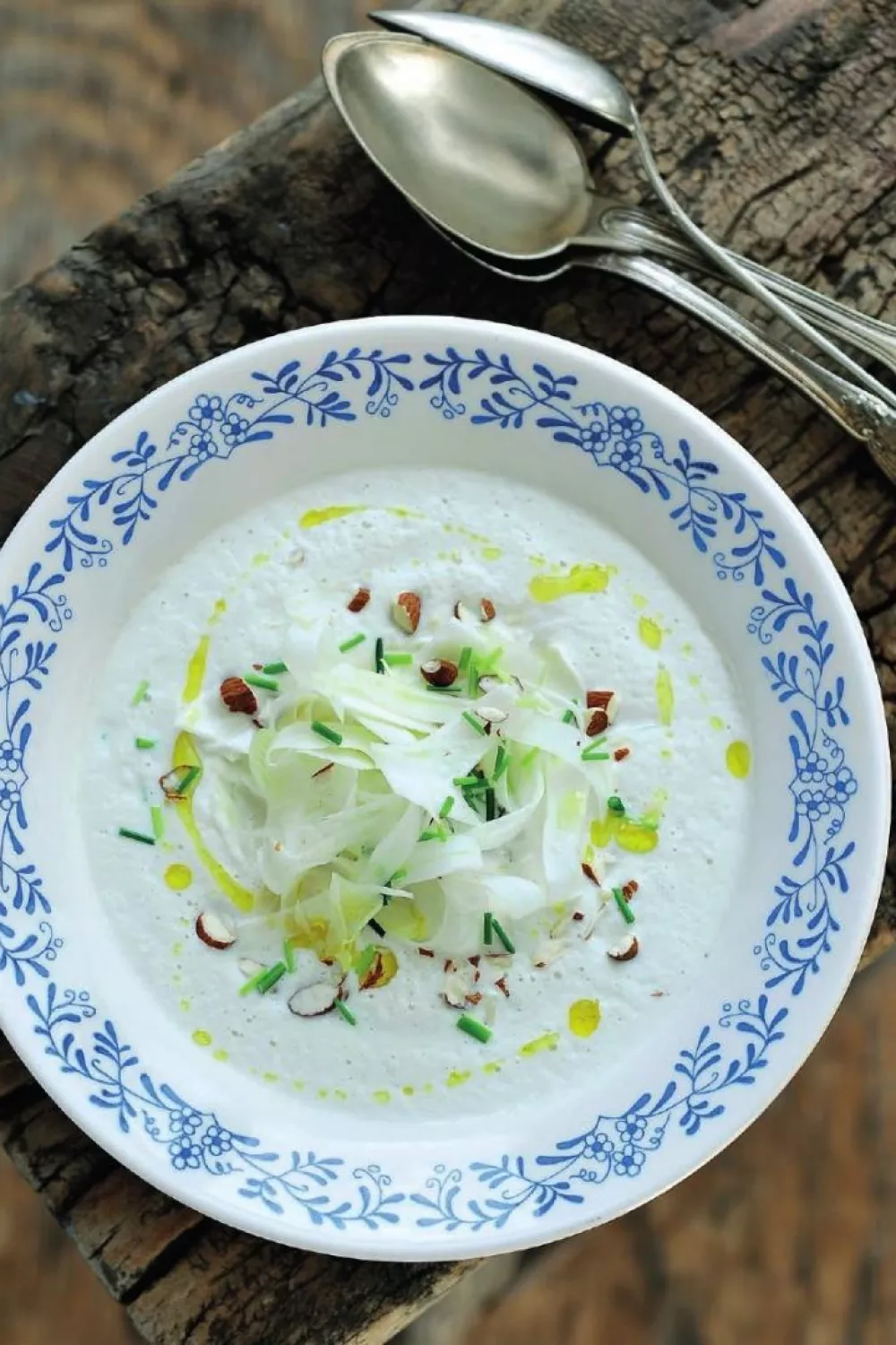 Venkelsoep met amandel en bieslook
