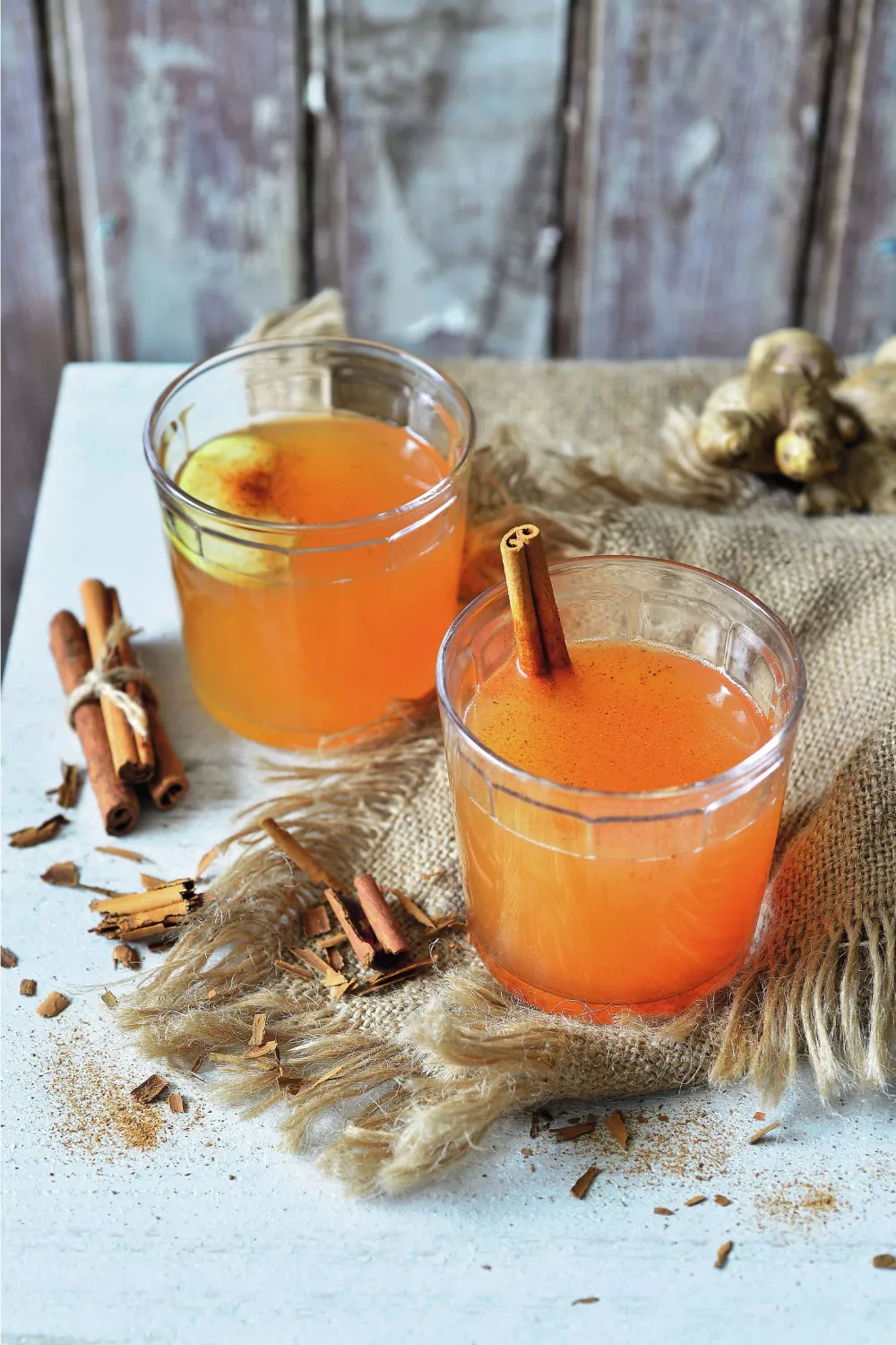Eens het doorkookt, zet je het vuur op een lage stand en laat je het zo ongeveer 12 minuten staan. Zet het vuur daarna af en laat nog heel even trekken. Zeef de appel, kaneel en gember eruit en serveer de thee in een glas of kop.