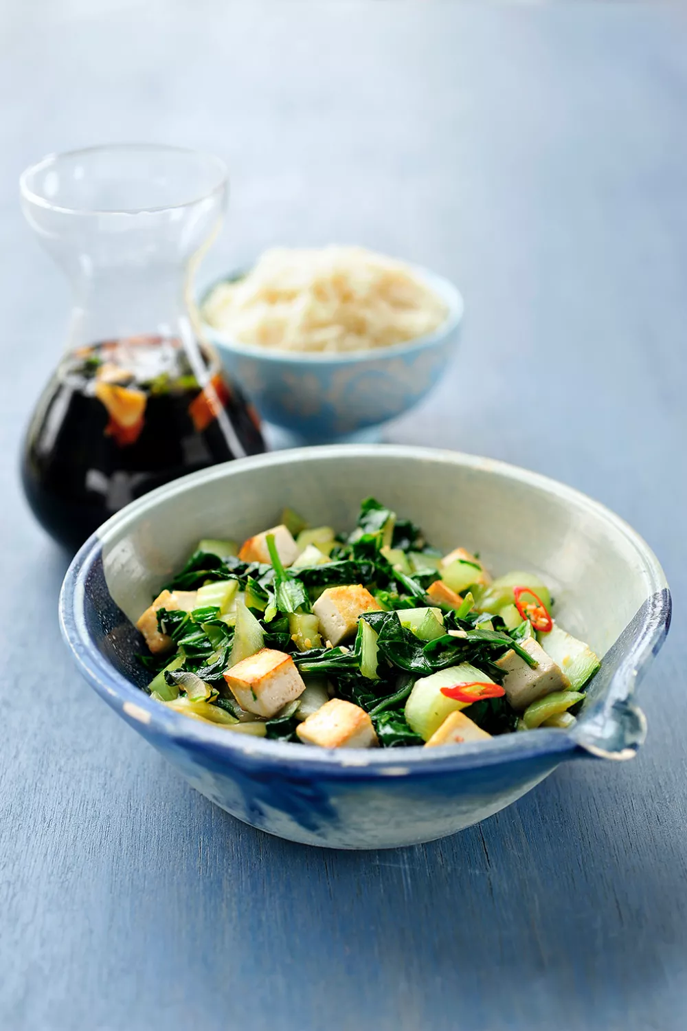 Stappenplan om recept “Vietnamese spinazie met tofu en soja-algensaus” te bereiden