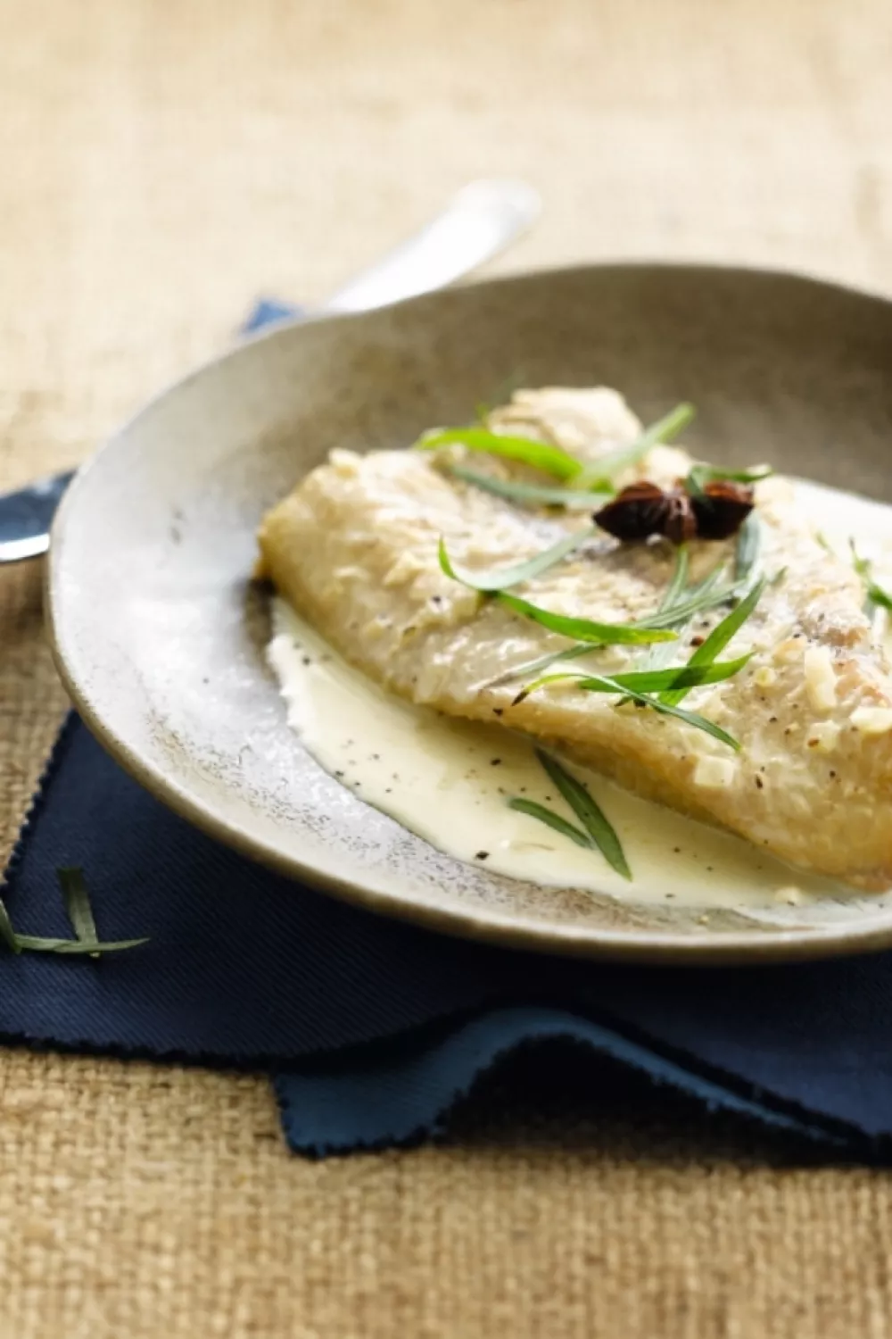 Zachte visfilets worden voorzichtig gepocheerd in aromatische cider met steranijs en afgewerkt met romige room en verse dragon, ideaal voor een lente- of zomerdiner. Sjalotjes en een vleugje knoflook geven een subtiele basis terwijl de steranijs een verrassend anijsaccent toevoegt. Snel en elegant van uitvoering, perfect voor zowel doordeweekse maaltijden als een feestelijk gezelschap.
