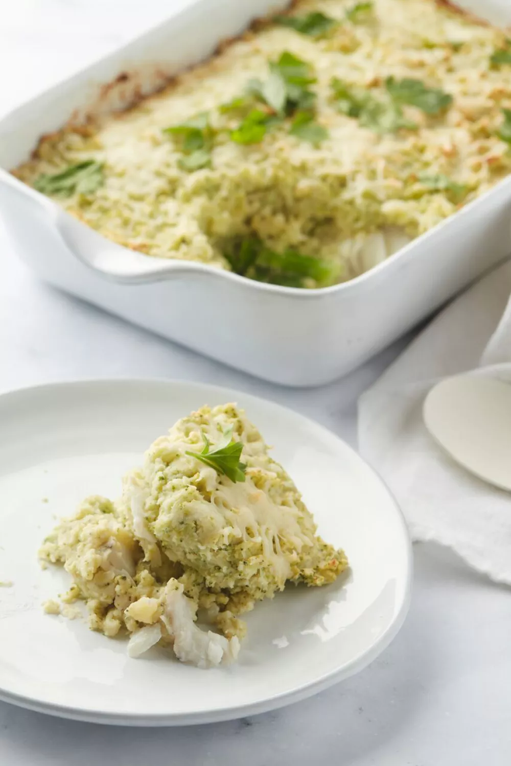 Romige visschotel met zachte kabeljauw en een smeuïge broccolipuree van aardappel en ricotta, opgepept met mosterd en een goudbruin kaaskorstje uit de oven. Een makkelijk ovengerecht dat snel klaar is en zich perfect leent voor een doordeweekse avond of een lichte lente- of zomerdiner. Werk af met platte peterselie voor een frisse toets.