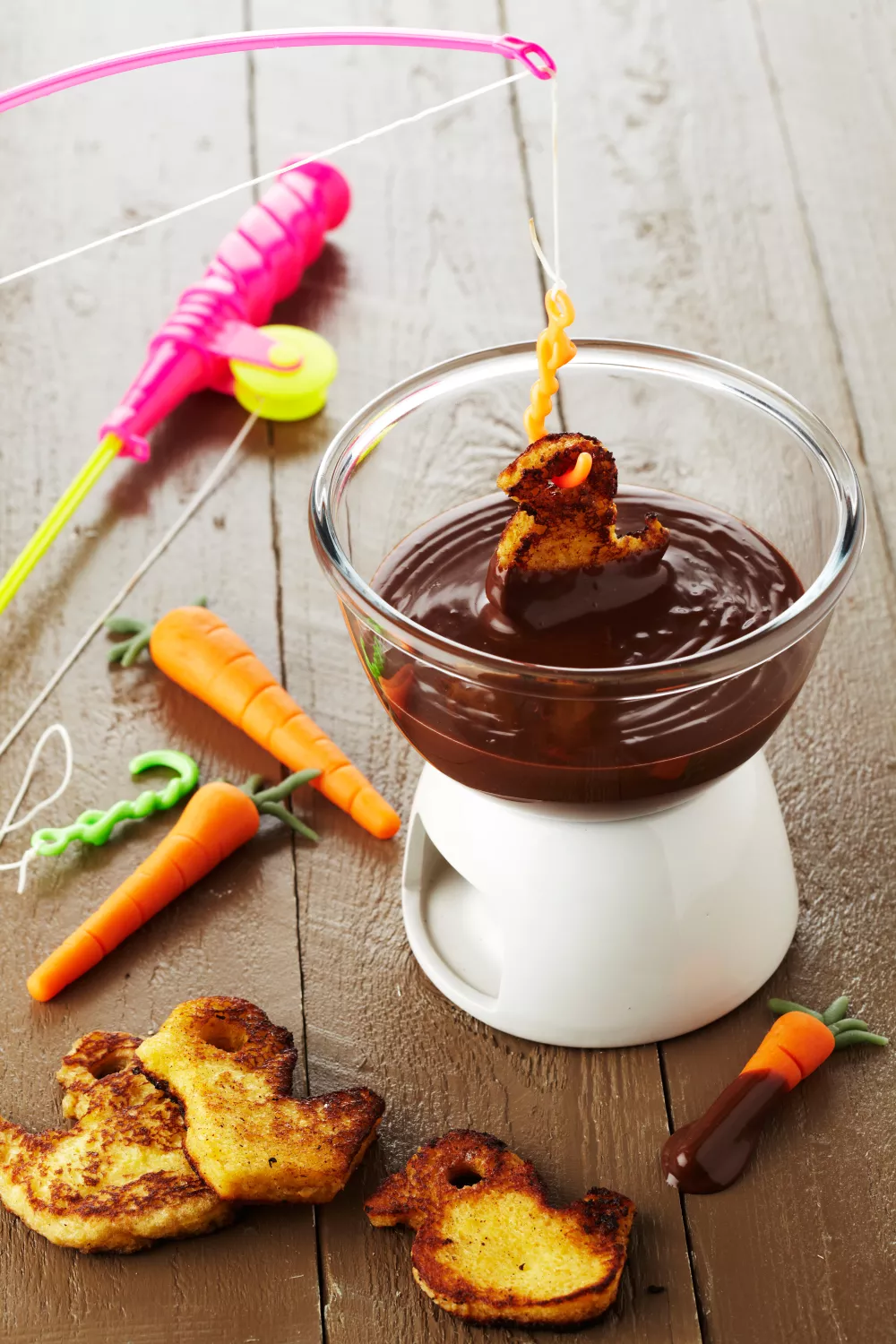 Luchtige briochevisjes gedoopt in warme, fluweelachtige chocoladefondue vormen een speels en feestelijk dessert voor gezellige avonden. Je wentelt kleine briochefiguurtjes kort in een vanille-eimengsel en bakt ze krokant in boter, om ze vervolgens aan een vishaak in een romige saus van room en gesmolten chocolade te soppen. Perfect voor feestjes, een intiem diner of knusse winteravonden wanneer je iets luchtigs en speels wilt serveren.