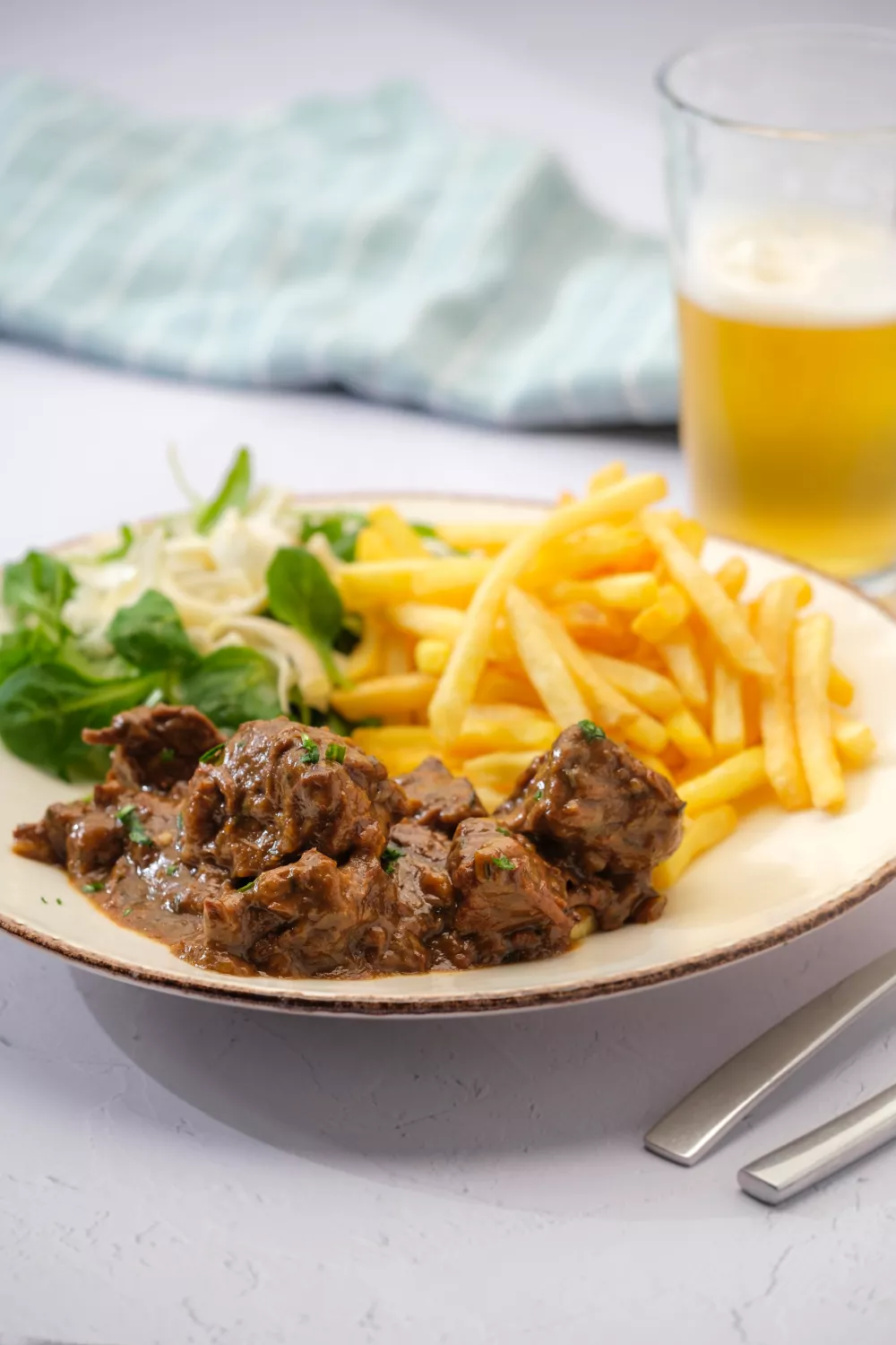 Vlaamse stoverij is een rijke, hartverwarmende stoofpot van rundsvlees, langzaam gestoofd in bruin trapistenbier met een vleugje kriek voor extra zoetzure diepgang. Met gestoofde ajuin, wortel en laurier krijgt het gerecht volop smaak; eerst dichtschroeien en daarna zachtjes pruttelen zorgt voor mals vlees in een diepe saus. Perfect als winterse familiemaaltijd of zondagse comfort food, geserveerd met knapperige frietjes.