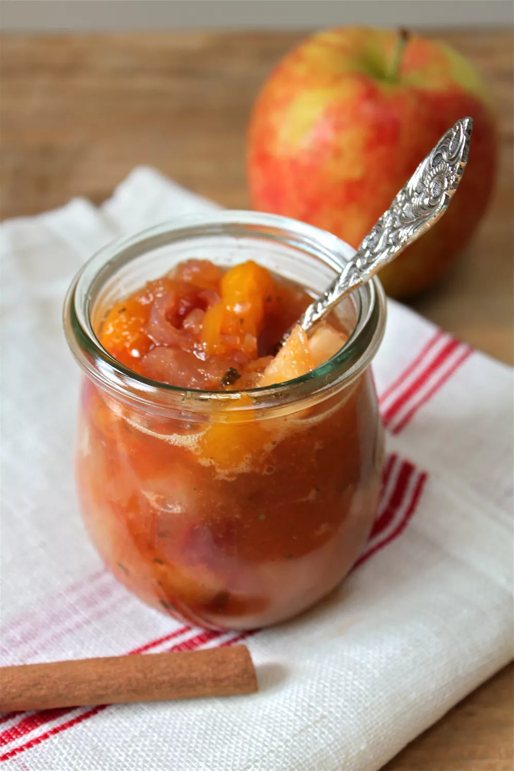 Deze fruitige chutney combineert pruimen, appel, peer en mango met gember, ciderazijn en warme specerijen voor een rijk zoet en pittig aroma. Door 90 minuten zacht te sudderen krijgt de saus diepte en een stevige, jamachtige textuur en kun je hem veilig in gesteriliseerde potten bewaren. Heerlijk bij geroosterd lamsvlees, op een kaasplank of als smaakmaker tijdens herfstige etentjes.