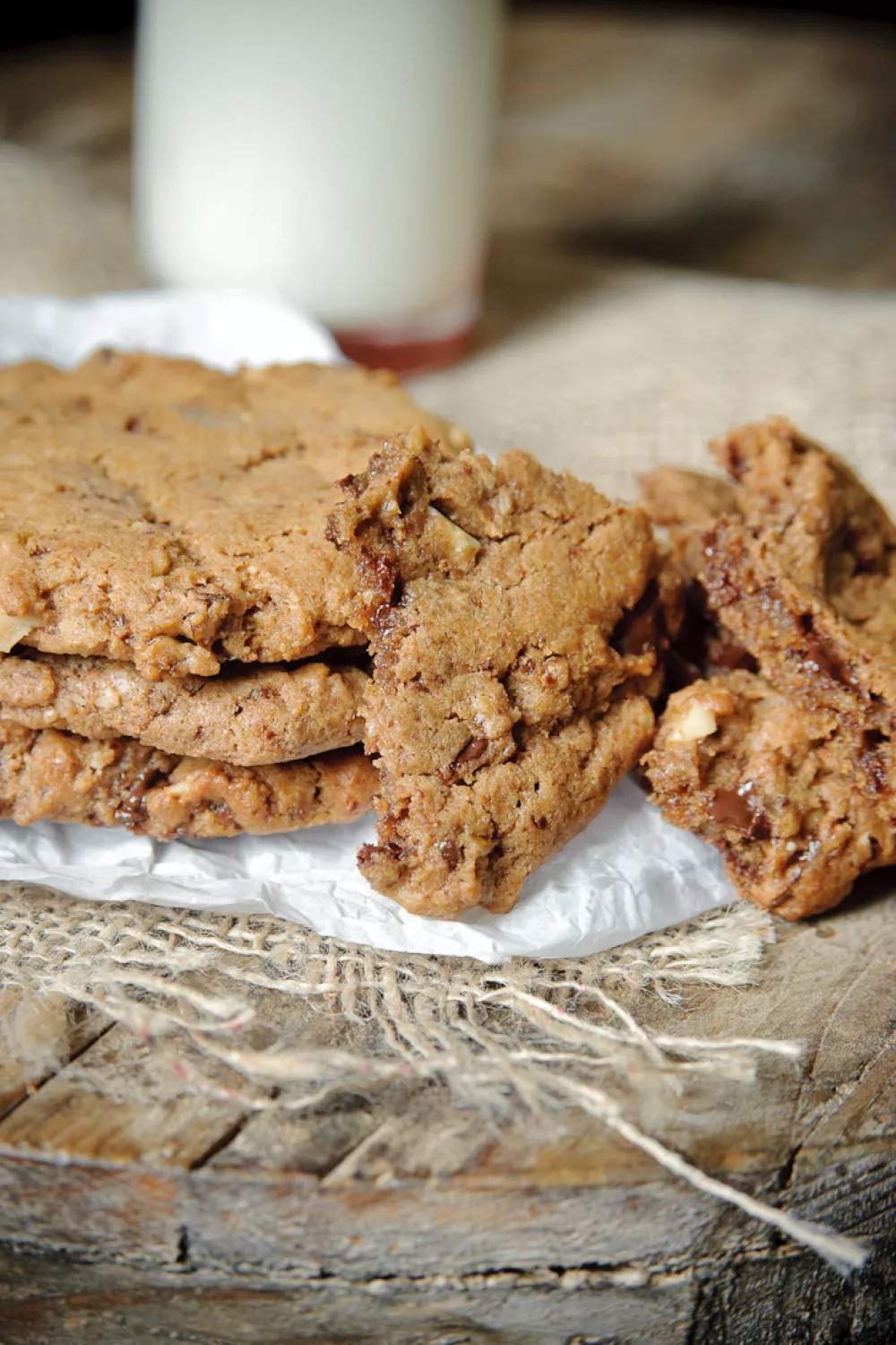 Warme, knapperige walnootkoekjes met rozijnen en chocoladedruppels zijn perfect als bij de koffie of als gezellige herfstige snack. De rozijnen worden kort geweekt in bruine rum voor extra diepte, het deeg romig gemengd met vanille en noten en vervolgens goudbruin gebakken in de oven. Simpel, geurend en vol textuur voor elke borrel of dessert.