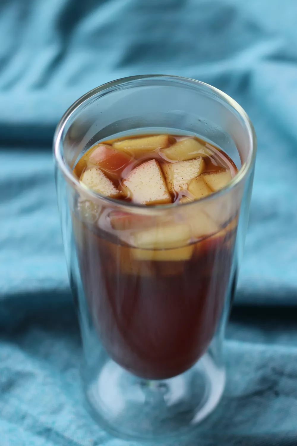 Warme wintersangria met zachte appelblokjes, esdoornsiroop, kaneel en zwarte thee krijgt met een scheut whiskey en amaretto een verwarmende, kruidige twist. Het is eenvoudig te maken: appel en siroop zachtjes laten pruttelen, thee laten trekken en tenslotte de likeuren toevoegen. Ideaal voor gezellige winteravonden, kerstborrels of als verwarmend digestief na het diner.