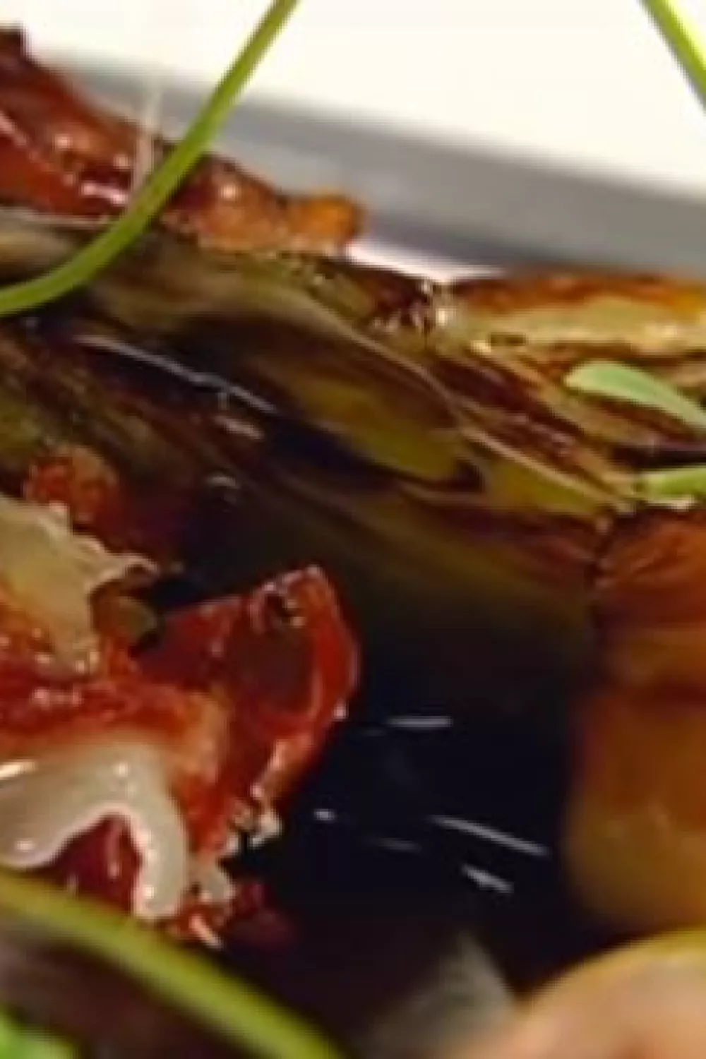 Elegante witloofrolletjes in Hof van Cleve stijl combineren licht gebraiseerd witloof met zacht, glanzend buikspek, romige Comtégel en een hartige hamcrumble. Het gerecht vraagt vaktechnieken zoals sous vide garing, curing met zeezout, agar agar geleren en lakken voor die verfijnde texturen en diepe umami. Perfect voor een feestelijk diner of een seizoensmenu waarin boterige ratte puree en knapperige pata negra samenkomen.