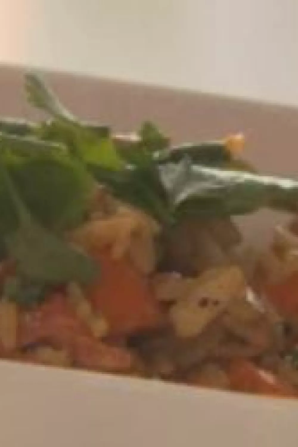 Doe de rijst erbij en roer de Alpro Cuisine eronder. Werk af met enkele takjes verse koriander.