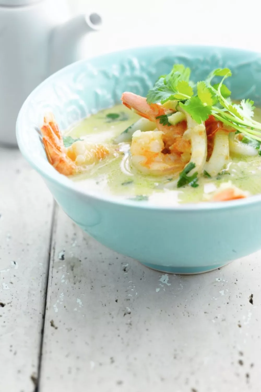 Deze wok van zeevruchten met groene curry combineert romige kokosmelk, frisse tomaat en pittige gember tot een aromatisch, licht pittig gerecht. Scampi's en inktvisringen worden kort gewokt en vervolgens zachtjes gesudderd, zodat de smaken intrekken en de zeevruchten mals blijven. Afgewerkt met vissaus, koriander of Thaise basilicum en vers limoensap, is het een snelle Aziatisch geïnspireerde maaltijd voor doordeweekse avonden of een zomers diner, geserveerd met rijst.