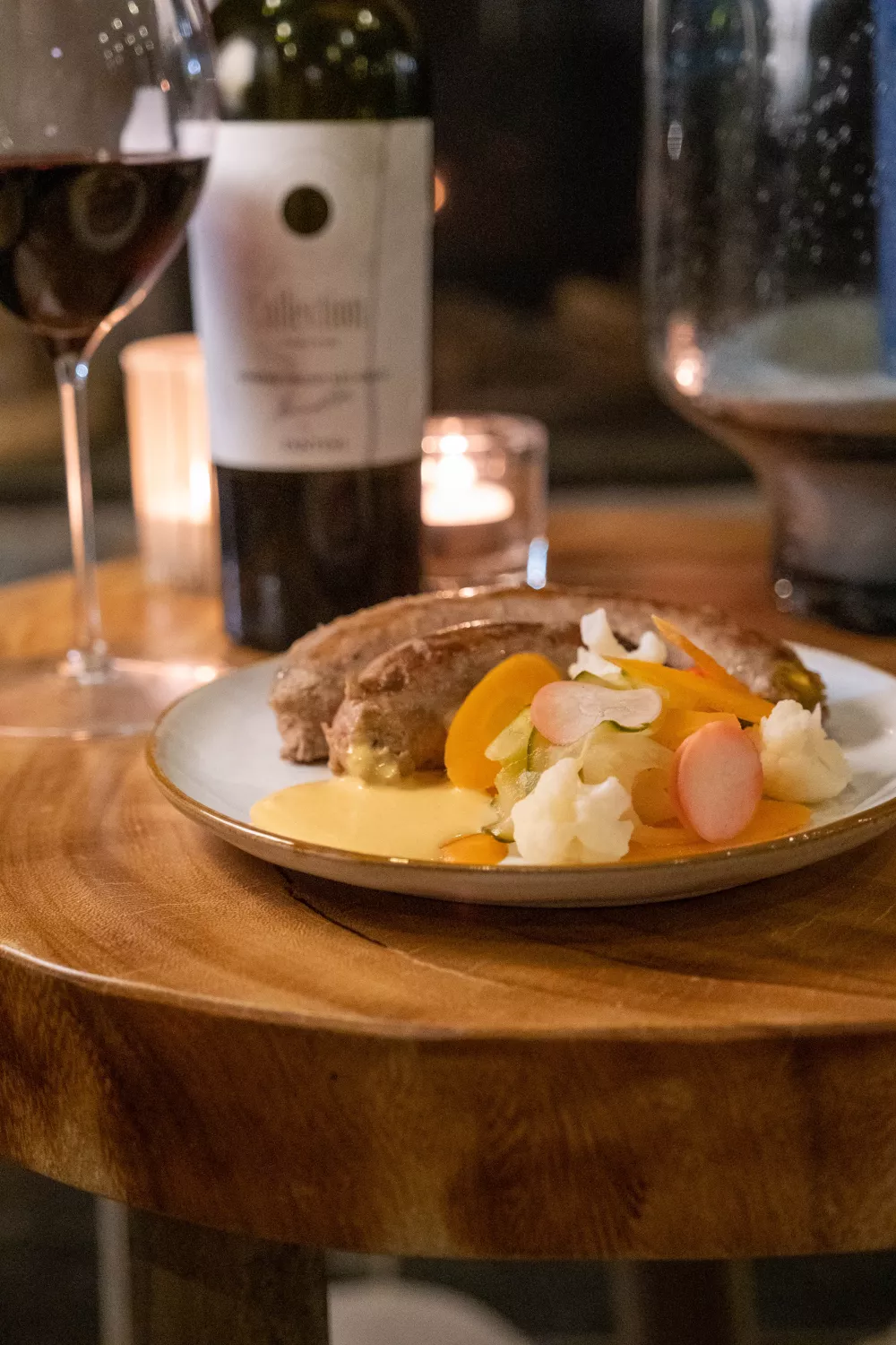 Worst met gepekelde groentjes en joppiesaus