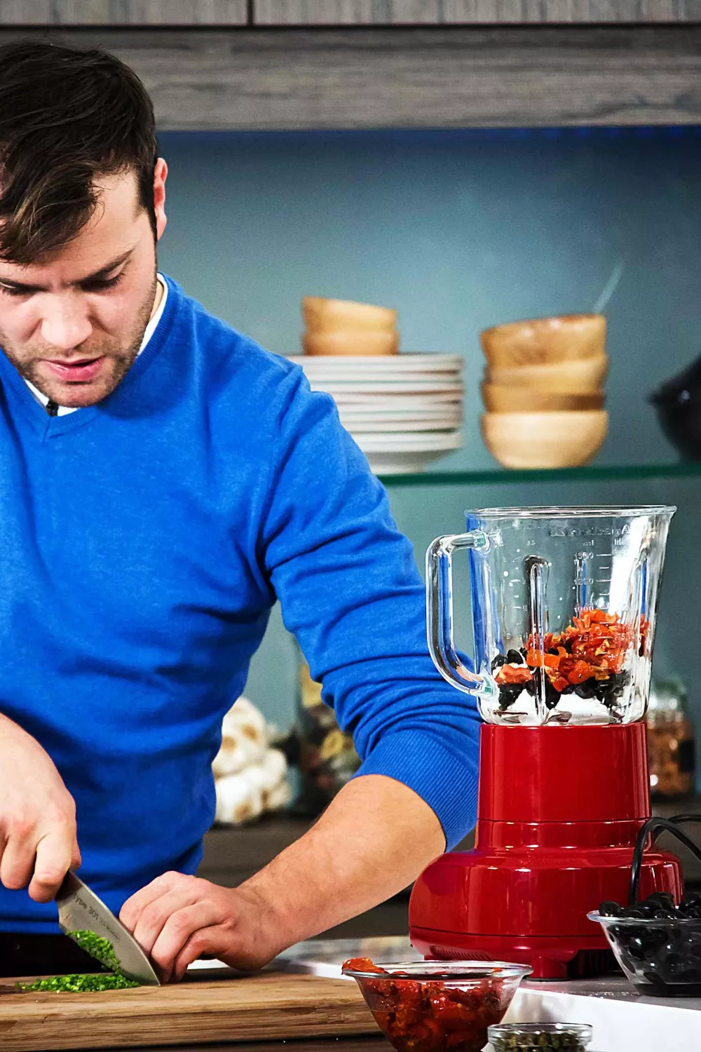 Grill de kip kort in een hete grillpan met een weinig tot geen vetstof aan beide kanten. Leg apart op een schaaltje.