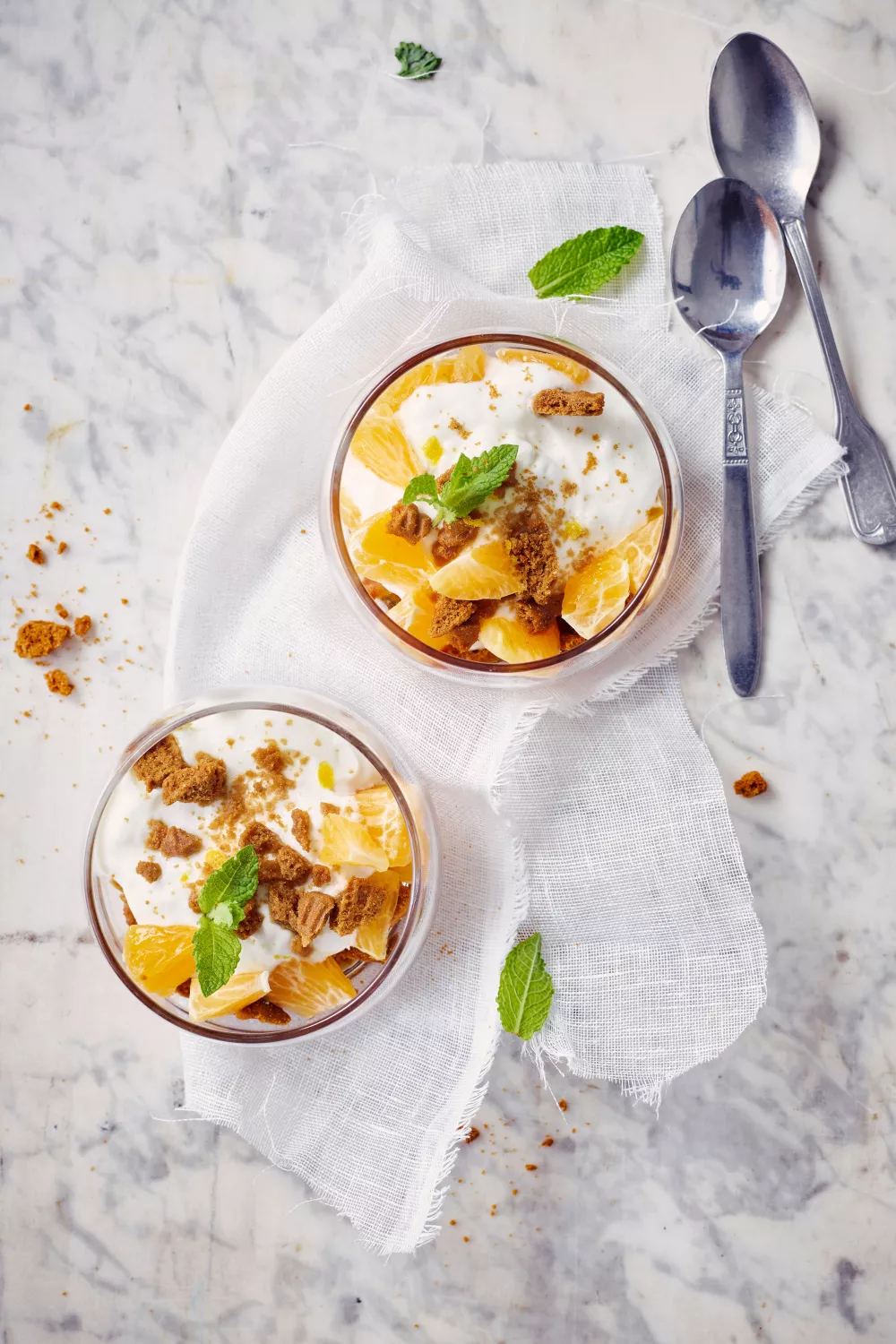Romige volle yoghurt met frisse mandarijn en krokante speculoos maakt dit glaasje tot een snel en feestelijk toetje. De speculoos even fijnblenden en alles in laagjes scheppen geeft een heerlijk contrast tussen zacht en crunchy. Lekker als makkelijk nagerecht, licht ontbijt of fris tussendoortje bij koffie of brunch.
