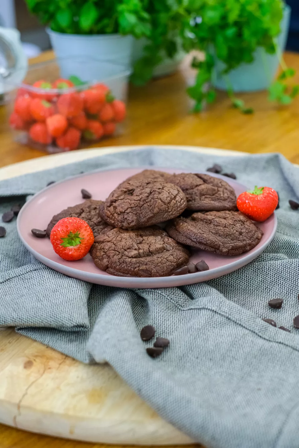 Zachte fudgeachtige chocoladekoekjes met een smeuïge, licht plakkerige kern en een diepe cacaosmaak die je meteen doet teruggrijpen naar een warm bordje. Door gesmolten chocolade en boter au bain-marie te mengen met opgeklopte eieren, cacaopoeder en chocoladedruppels ontstaat een rijk deeg dat na kort koelen in de oven goudbruin bakt. Perfect als snelle traktatie, dessert of bij de koffie tijdens gezellige winteravonden of feestelijke gelegenheden.