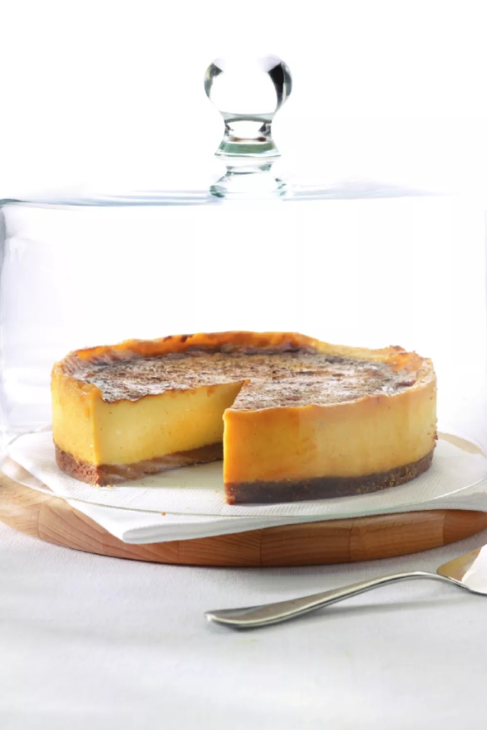 Deze zachte kaastaart brengt romige plattekaas en Griekse yoghurt samen met subtiele vanille en frisse citrus van citroengras en limoen op een goudbruine deegbodem. De vulling wordt eerst gekookt als pudding en daarna luchtig gehouden met opgeklopt eiwit voor een fluweelzachte, ovengebakken structuur. Koel opdienen als feestelijk dessert of bij brunch en koffie, met de limoencrème voor een extra frisse toets.