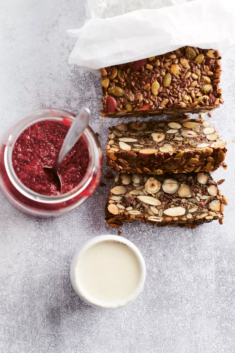 Robuust zadenbrood met een nootachtige crunch en een subtiele zoete toets van framboos, perfect in balans tussen hartig en licht fruitig. De kokos rasp je in de keukenmachine tot hij smeuïg is en dat meng je met gemengde noten, pitten, lijnzaad, eieren, olijfolie en Provençaalse kruiden, waarna je het in de oven bakt tot goudbruin. Ideaal als voedzaam ontbijt, brunch of tussendoortje, makkelijk in te vriezen en eenvoudig vegan te maken met een lijnzaadgel.