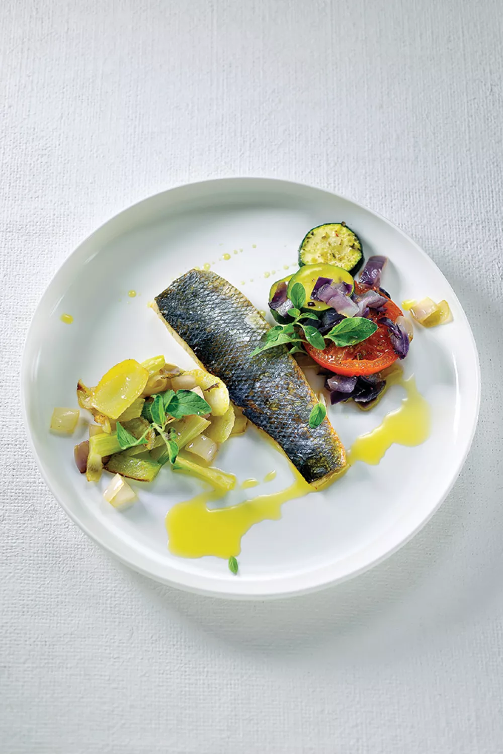 Haal de vis uit de oven. Serveer samen met de gestoofde venkel en geroosterde groentjes.