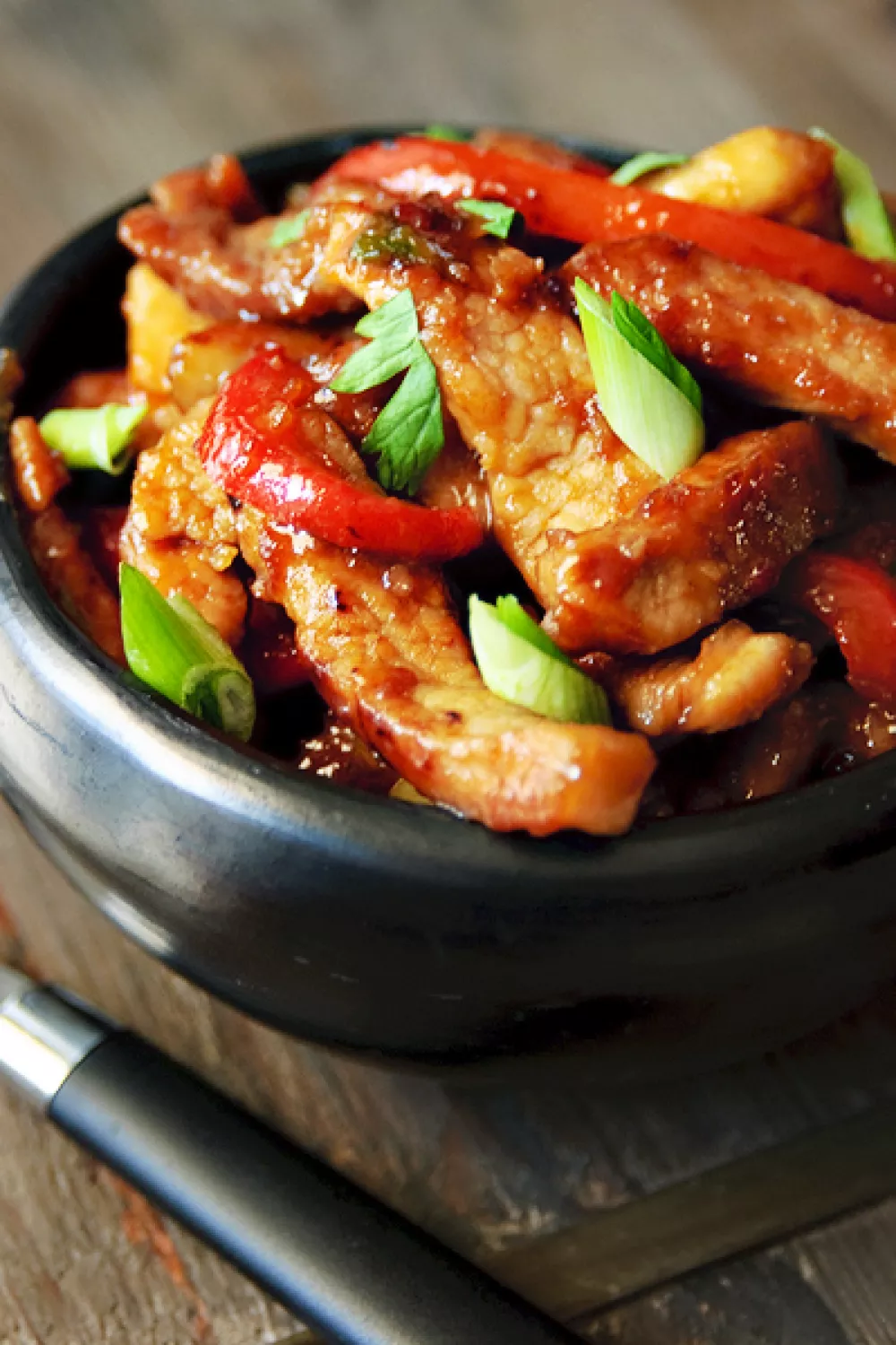 Stappenplan om recept “Zoete reepjes varkensvlees met rode paprika en lente-uitjes” te bereiden