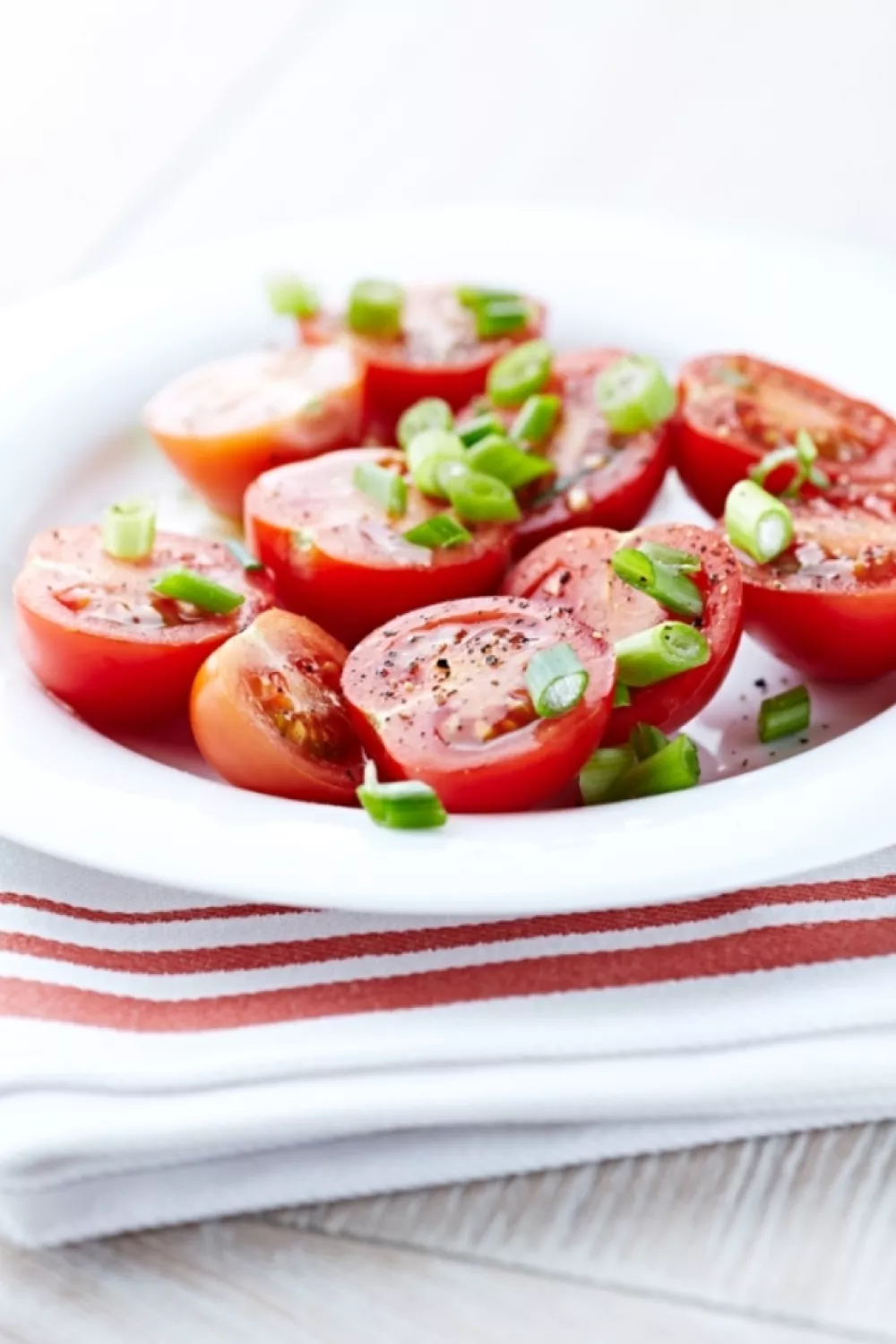 Frisse zoetzure kerstomaatjes met fijngesnipperde ajuin die in een paar minuten veranderen in een smaakvolle, zoet-zure bijgerecht of saladecomponent. Een eenvoudige dressing van honing, rode wijnazijn en wat water laat de sappige tomaatjes glanzen en past perfect bij gegrild vlees, buikspek of een zomerse picknick.