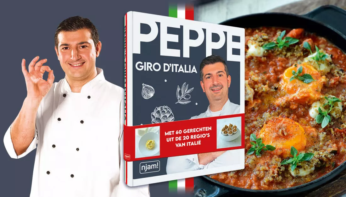 In zijn nieuwe boek Peppe’s Giro d’Italia neemt njam!-chef Peppe Giacomazza iedereen mee op een ronde door Italië. Peppe vertelt over zijn favoriete regio’s van Italië, met fijne weetjes en 60 toegankelijke recepten uit die regio’s. Een heerlijke rode pasta carbonara uit Lazio of een Vitello Tonato uit Piemonte? In dit boek doet Peppe alle geheimen uit de doeken. Zoals het een goed Italiaans recept betaamt, wordt alles gemaakt met pure producten van hoge kwaliteit en op een eenvoudige wijze.