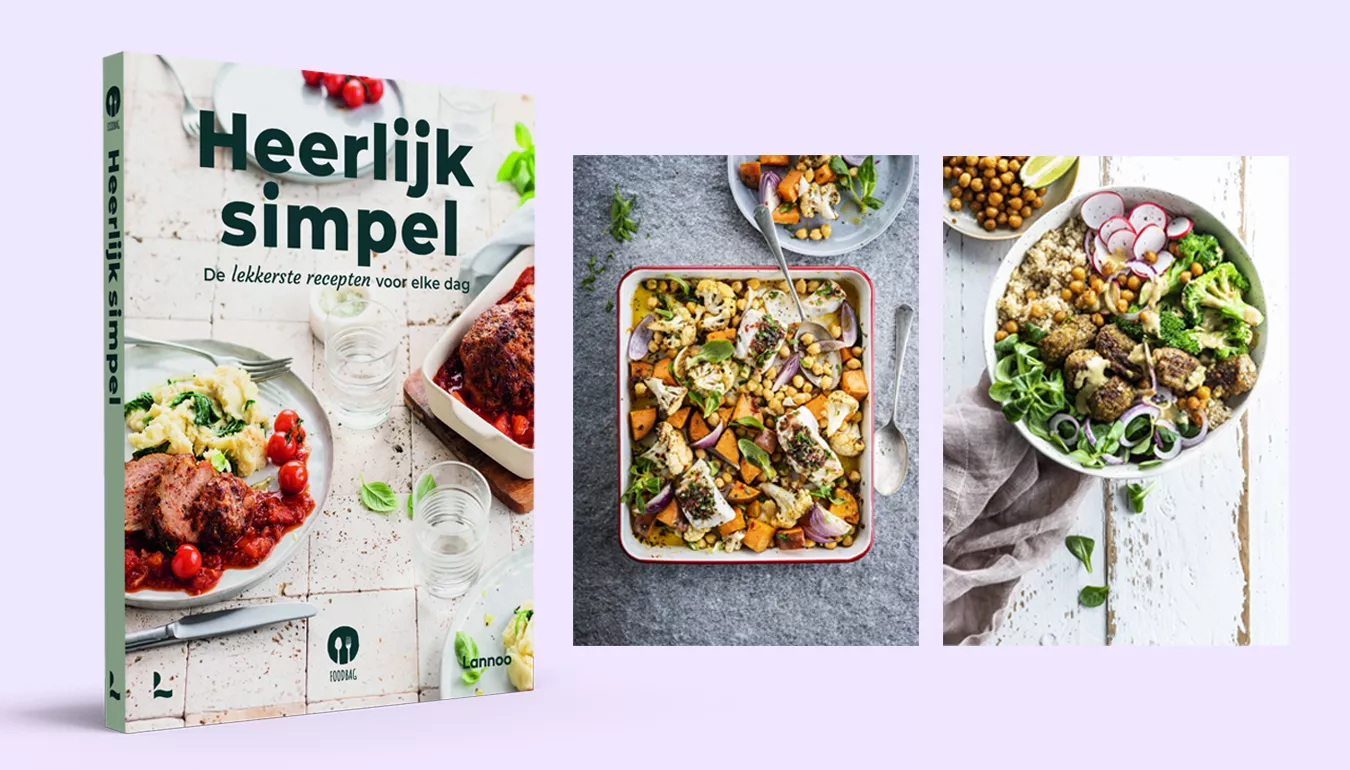 Een overvolle agenda en weinig tijd om te koken, maar geen zin om elke avond frietjes te gaan halen? Herkenbaar? In het gloednieuwe kookboek van uitgeverij Lanno 'Heerlijk simpel' van Foodbag vind je maar liefst 65 eenvoudige recepten die in een handomdraai klaar zijn.