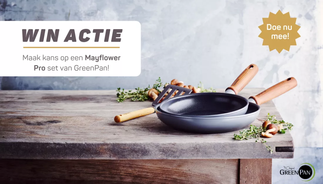Zin om zelf aan de slag te gaan met de gezonde pannen van GreenPan? Wij geven 15 Mayflower Pro sets weg! Doe snel mee aan onze wedstrijd en wie weet, staan deze mooie pannen binnenkort te blinken in jouw keuken.