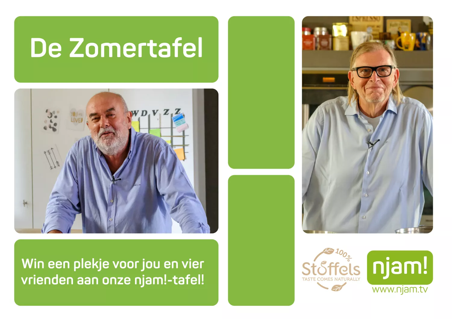 Heb jij altijd al eens een tv-opname willen bijwonen? Wil je bovendien genieten van heerlijke receptjes en een exclusieve preview krijgen van ons nieuwste zomerprogramma? Dan hebben wij goed nieuws want je kan nu kans maken om aanwezig te zijn op één van de opnames van ‘De Zomertafel’. In elke aflevering zullen 2 njam!-chefs het beste van zichzelf geven. De gasten schuiven nadien aan om van de creaties te proeven.