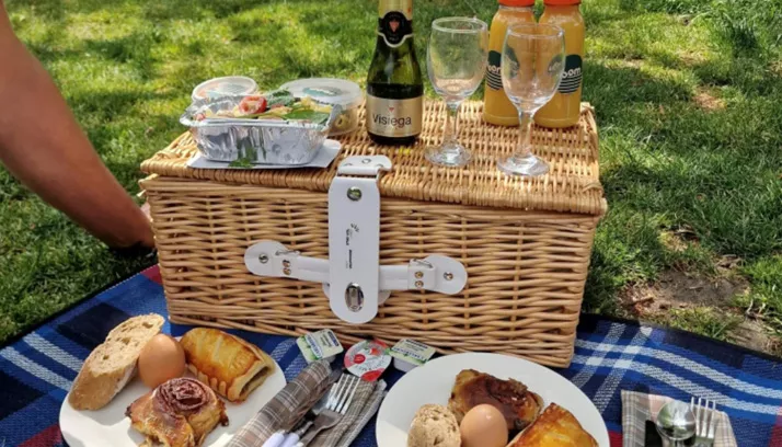 De picknickmand is gevuld met allerlei lekkers waaronder: een aperoplankje met dips, blini’s met zalm, salade, fruit, dessert, een flesje cava & sinaasappelsap. Alle manden zijn inclusief bestek, glazen, borden, servieten, kurkentrekker, Visit Vilvoorde picknickdeken en een afvalzakje.