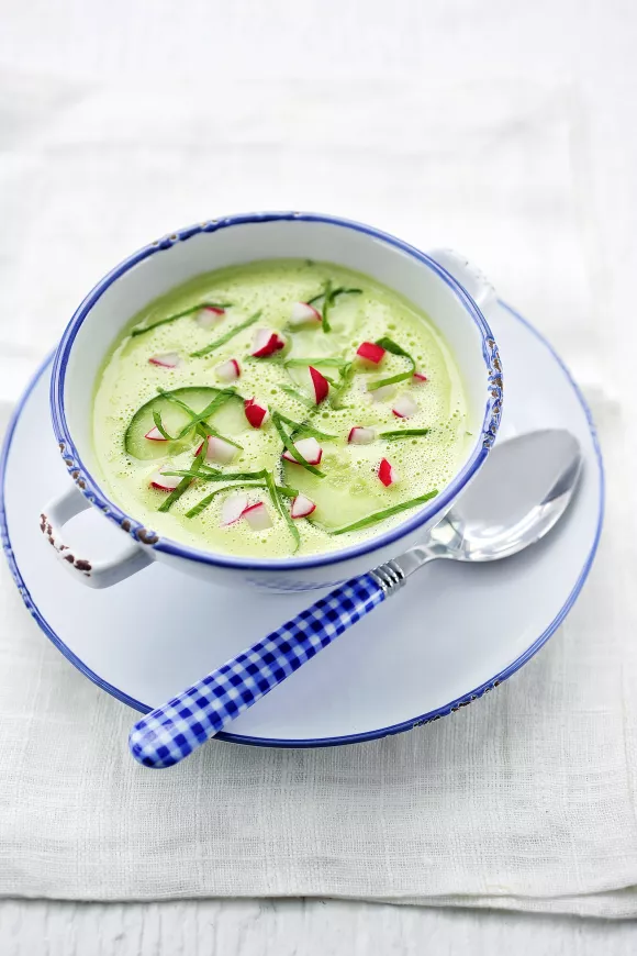 Koude komkommersoep met radijsjes